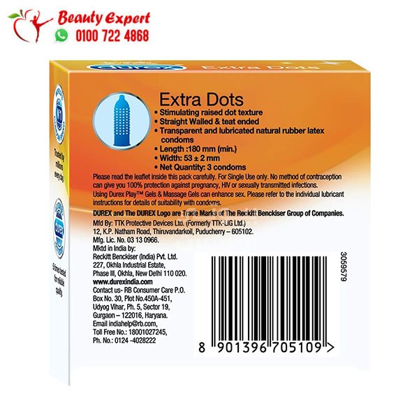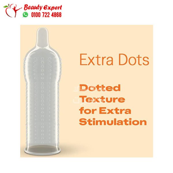 اختيار ديوركس إكسترا دوتس يعني تعزيز التواصل والانسجام الحسي بينكما في كل مرة، فهو من أفضل أنواع الواقي الذكري لتحفيز المتعة ومنع الحمل. تعرف الآن على سعر Durex Extra Dots في مصر وابدأ تجربة مختلفة من المتعة.